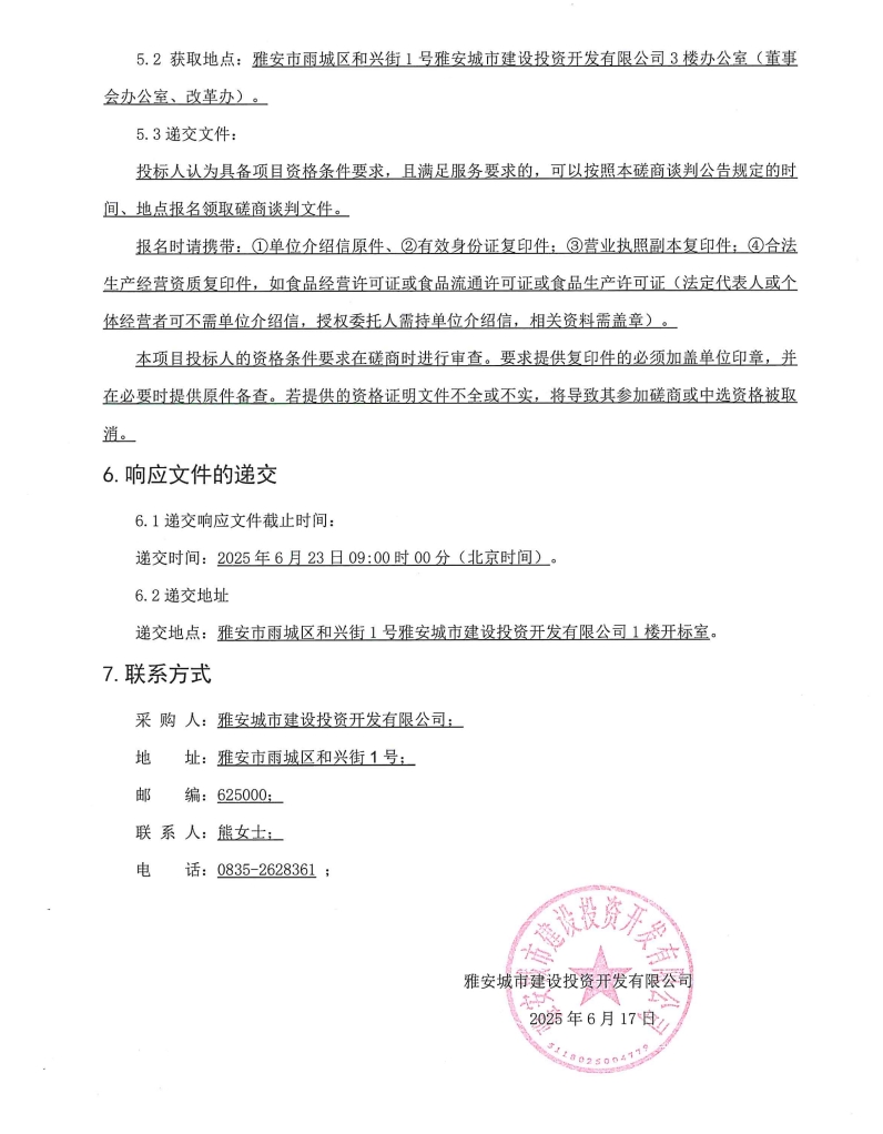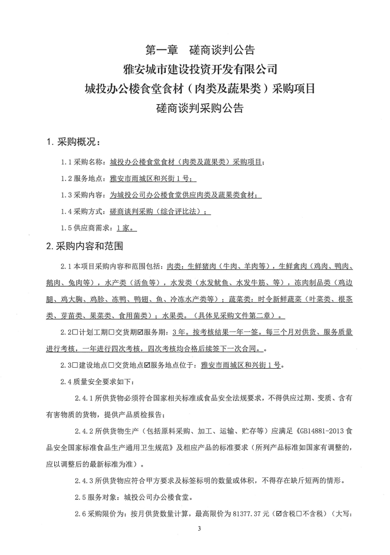 雅安城市建設(shè)投資開發(fā)有限公司城投辦公樓食堂食材(肉類及蔬果類)采購(gòu)項(xiàng)目磋商談判采購(gòu)公告