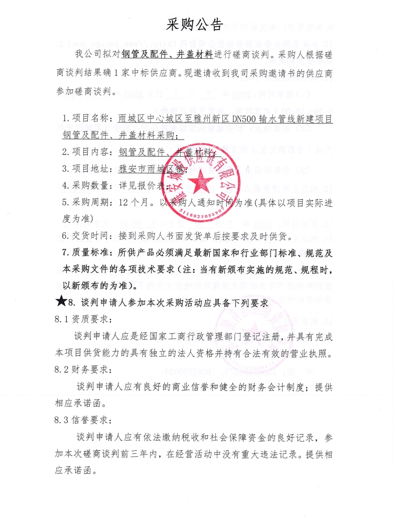 鋼管及配件、井蓋材料采購公告